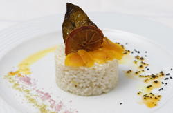 | Εκτέλεση Πλένουμε καλά το ρύζι και το αφήνουμε να στραγγίσει. Σε μια χαμηλή κατσαρόλα βάζουμε τα 2/3 του ελαιόλαδου ΛΙΟΤΡΙΒΙ και βάζουμε σε χαμηλή φωτιά . Προσθέτουμε το κρεμμύδι και ανακατεύουμε με ξύλινη σπάτουλα μέχρι να ξανθίσει. Προσθέτουμε το ρύζι και ανακατεύουμε μέχρι οι κόκκοι να γίνουν διάφανοι . Όταν φτάσουμε σ΄αυτό το σημείο σβήνουμε με το κρασί μας και ανακατεύουμε ευγενικά για να μην σπάσουμε τον κόκκο του ρυζιού. Αφήνουμε σε σιγανή φωτιά μέχρι να πιεί τα υγρά του. Όταν τα πιεί, προσθέτουμε λίγο ζωμό ίσα που να σκεπαστεί το ρύζι και ανακατεύουμε. Αυτή τη διαδικασία την επαναλαμβάνουμε μέχρι το ριζότο μας να είναι έτοιμο. Θα το καταλάβουμε ότι είναι έτοιμο όταν, δαγκώνοντάς το, κρατάει λίγο στο δόντι. Λίγο πριν το κατεβάσουμε απ΄τη φωτιά, προσθέτουμε μερικές φετούλες αυγοτάραχο και ανακατεύουμε για να λιώσει ( το αυγοτάραχο δεν κάνει να μαγειρευτεί γιατί καταστρέφονται τα συστατικά του). Σερβίρουμε στα πιάτα μας και προσθέτουμε από πάνω μερικές φετούλες αυγοτάραχο και δίπλα ένα μίγμα από ψιλοκομμένη πράσινη ΕΛΙΑ ΣΠΙΤΙΚΟ με το υπόλοιπο ελαιόλαδο, λίγο χυμό λεμόνι και λίγο ξύσμα από τη φλούδα του ( τα οποία έχουμε φτιάξει από πριν ). Ραντίζουμε το πιάτο με μερικές πινελιές από έξτρα παρθένο ΣΠΙΤΙΚΟ. |