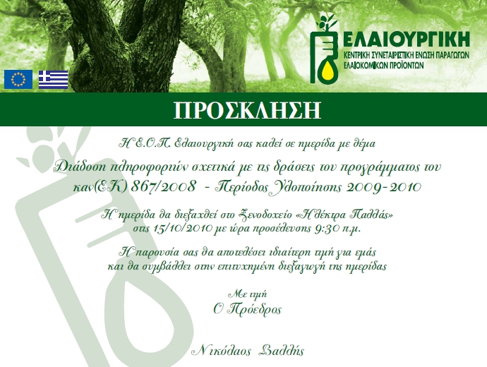 Διάδοση πληροφοριών σχετικά με τις δράσεις του προγράμματος του καν(ΕΚ) 867/2008 - Περίοδος Υλοποίησης 2009-2010