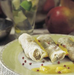 | Εκτέλεση Σωτάρουμε σε εξαιρετικό παρθένο ΣΠΙΤΙΚΟ, το σκόρδο και το τζίντζερ. Στη συνέχεια ρίχνουμε τα καρότα και μετά τα υπόλοιπα λαχανικά. Σωτάρουμε σε δυνατή φωτιά για 5 λεπτά, ρίχνοντας σιγά – σιγά το ζωμό κότας και τη σόγια σως. Μετά ψήνουμε το στήθος κοτόπουλου. Όταν ψηθεί, το ψιλοκόβουμε και το ανακατεύουμε με τα υπόλοιπα υλικά. Με το μίγμα γεμίζουμε τα φύλλα ρυζιού. Τηγανίζουμε τα αυτοκρατορικά ρολά σε πολύ δυνατή φωτιά και σε αντικολλητικό τηγάνι με μπόλικο ελαιόλαδο ΛΙΟΤΡΙΒΙ για 1 λεπτό, μέχρι να ροδίσουν. |