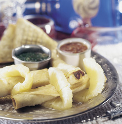 | Εκτέλεση Βράζουμε τις πατάτες και τις λιώνουμε. Προσθέτουμε στις πατάτες τα μπαχαρικά και ανακατεύουμε. Σε αντικολλητικό τηγάνι, σωτάρουμε λίγο ψιλοκομμένο σκόρδο με Εξαιρετικό Παρθένο ελαιόλαδο ΣΠΙΤΙΚΟ και ακολούθως προσθέτουμε τα καρότα. Κατόπιν ρίχνουμε τα πράσα, τα κολοκύθια και έπειτα τις πιπεριές. Στο τέλος ρίχνουμε τα μπαχαρικά και ανακατεύουμε τα σωταρισμένα υλικά με τις πατάτες. Με το μίγμα πατάτας-λαχανικών γεμίζουμε τις ινδικές πιτούλες και τις τηγανίζουμε με ελαιόλαδο ΛΙΟΤΡΙΒΙ σε δυνατή φωτιά, για 3 λεπτά. Συνοδεύονται με σάλτσα της αρεσκείας σας ( εξωτικού φρούτου ταμαρίνδου, τζίντζερ-δυόσμου, ντομάτα-σιναπόσπορου, μάνγκο). |