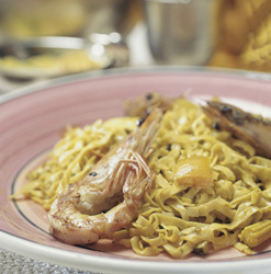 | Εκτέλεση Για τις νούγιες: Σωτάρουμε το τζίντζερ και το σκόρδο σε αντικολλητικό τηγάνι με Εξαιρετικό Παρθένο ελαιόλαδο ΣΠΙΤΙΚΟ. Ρίχνουμε τα λαχανικά μαζί με το ζωμό κότας, τη σόγια σως, το sherry και τα μπαχαρικά. Προσθέτουμε όσο Εξαιρετικό Παρθένο ελαιόλαδο ΣΠΙΤΙΚΟ χρειαστεί και σωτάρουμε σε δυνατή φωτιά για 3 λεπτά. Σε μία κατσαρόλα βράζουμε νερό και ρίχνουμε τα noodles ( τις νούγιες ) για 2 λεπτά. Τα σουρώνουμε και τα ανακατεύουμε με λίγο Εξαιρετικό Παρθένο ελαιόλαδο ΣΠΙΤΙΚΟ και 3 κουταλιές της σούπας σόγια σως. Για την ασιατκή σάλτσα altamira: Σωτάρουμε το μαραθόσπορο με βούτυρο. Ρίχνουμε το τούρμερικ, το ζωμό κότας και την κρέμα γάλακτος. Προσθέτουμε το corn flour αραιωμένο σε 100 ml νερό. Μοντάρισμα: Μαρινάρουμε τις γαρίδες με Εξαιρετικό Παρθένο ελαιόλαδο ΣΠΙΤΙΚΟ. Τις ψήνουμε στη σχάρα και τις περιχύνουμε με την ασιατική σάλτσα altamira. Σερβίρουμε τα κινέζικα μακαρόνια ( νούγιες ) και από πάνω τους, τις γαρίδες με την κινέζικη σάλτσα altamira. |